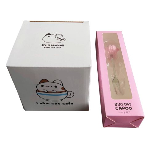 [奶泡貓]奶泡貓造型馬克杯+ [貓貓蟲-咖波] 九越-咪卡水果叉 |